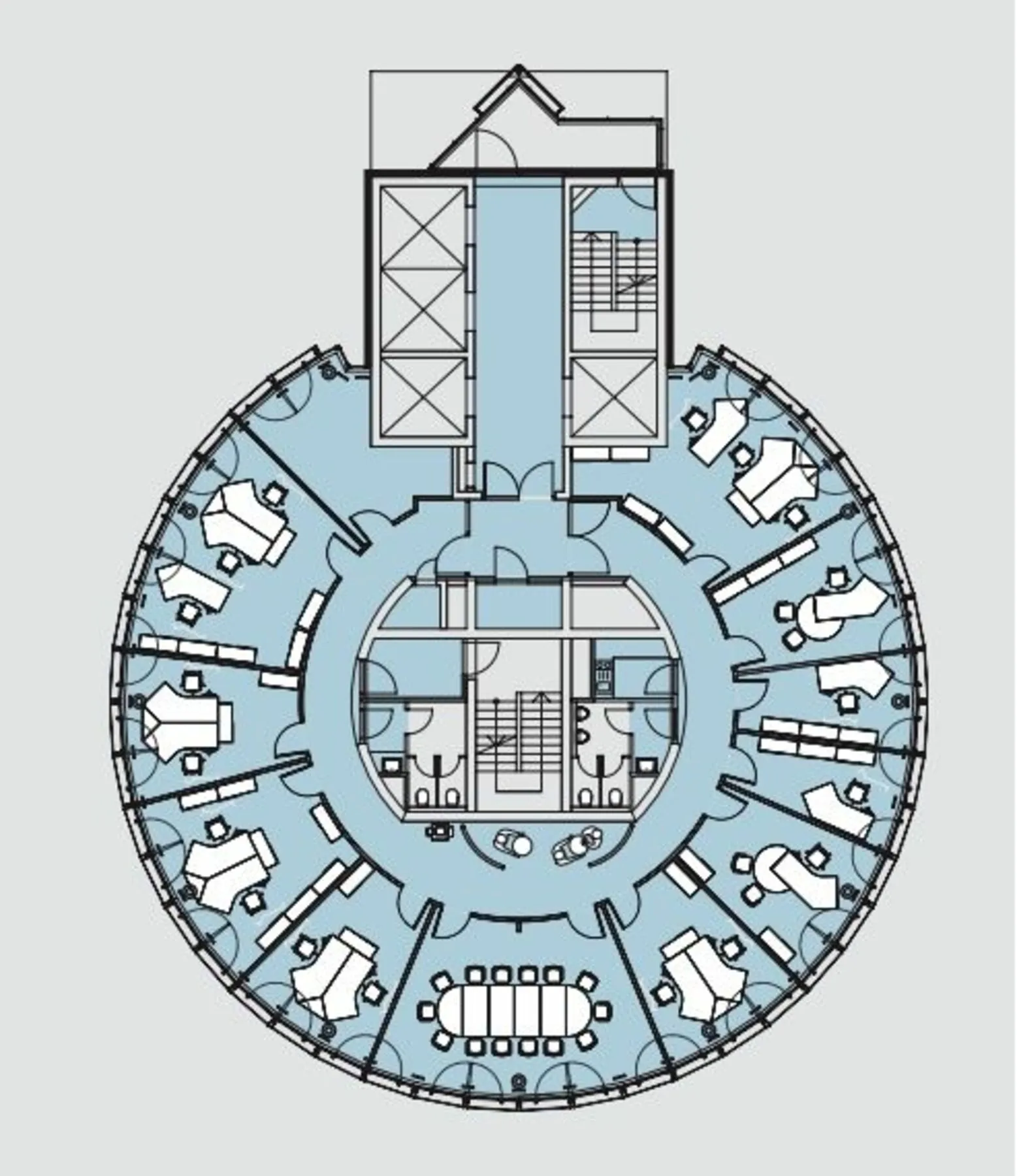 Im Tower 7., 9., 13., 15. und 21. Obergeschoss mit je 554 m²