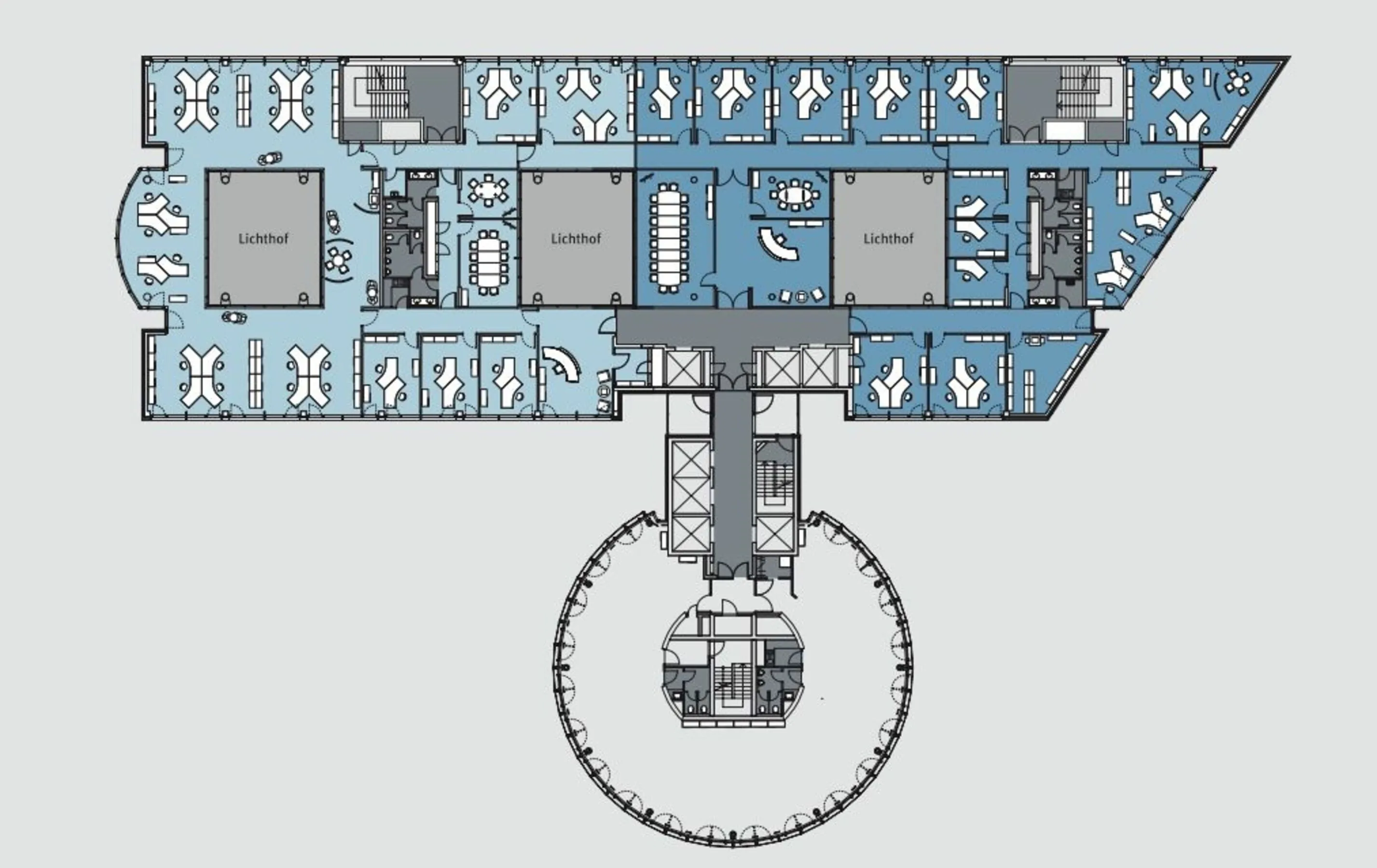 Mietpreise : 7. OG 26,00 €/m²; 9. OG 27,00 €/m², 13. OG 29,00 €/m², 15.OG 30,00 €/m², 21.OG 33,00 €/m²